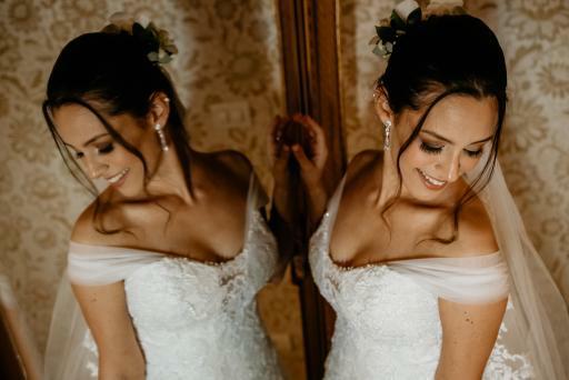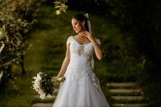 Com um vestido evasê Ivana Beaumond Paris, a futura esposa arrancou suspirou ao usar um modelo com saia leve e fluida, em tule de seda. Além disso, para complementar ainda mais o visual, o corte ombro a ombro reforçou o romantismo do look, garantindo ares de um verdadeiro conto de fadas.
