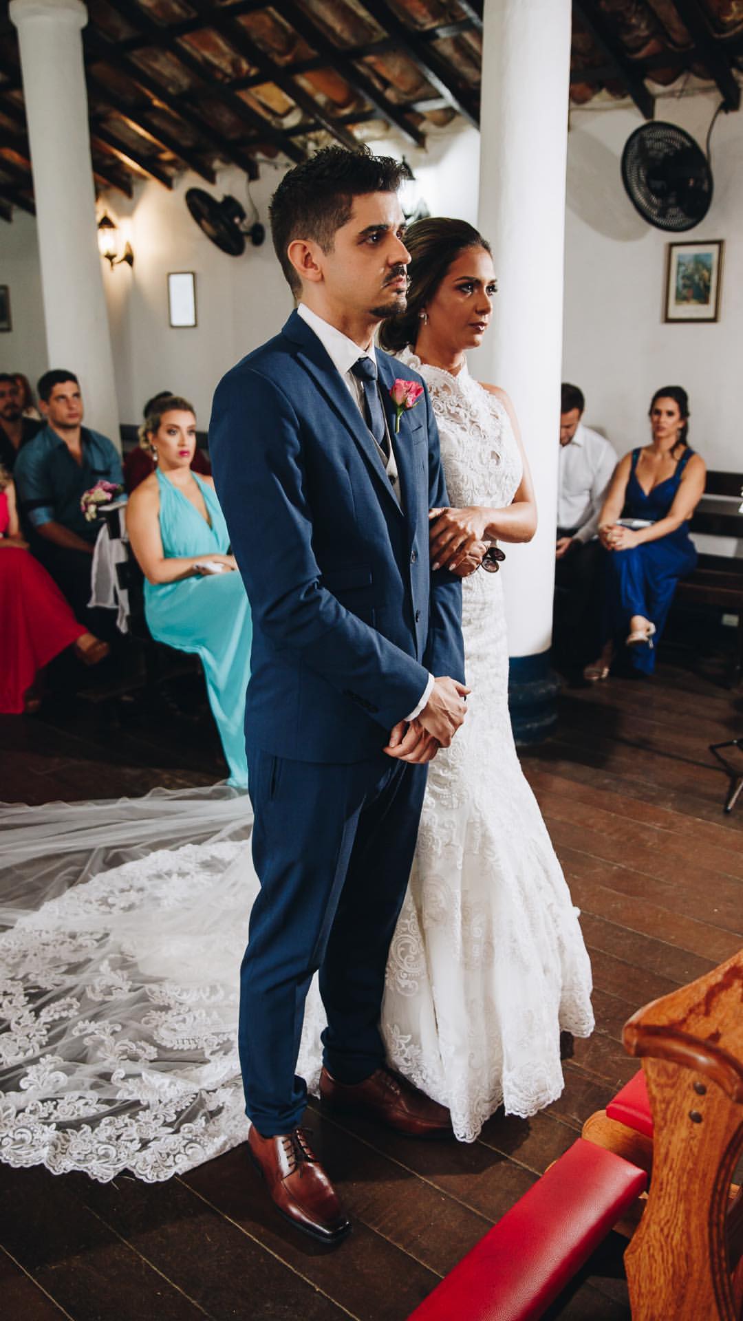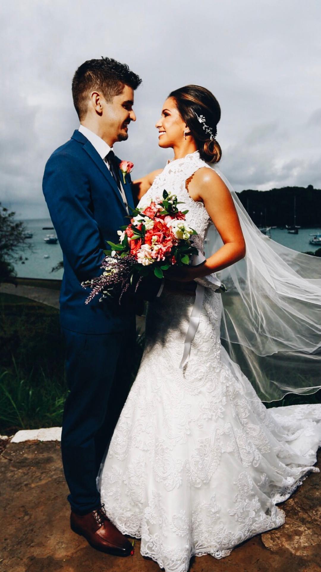 Vestido: Ivana Beaumond Paris. Fotografia: Pedro Couto. Filmagem: Brocoliz. Local da Cerimônia: Capela de Santana, Armação dos Búzios – RJ. Maquiagem: Andressa Paiva. Beleza do Noivo: Barber Shop by Paulo Robbert (Cabo Frio – RJ). Cerimonial: Cris Bueno.