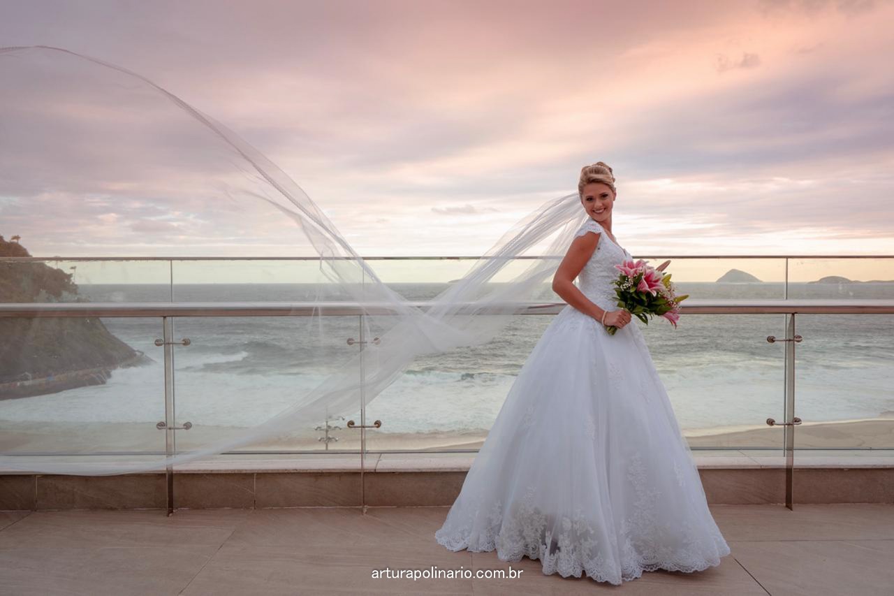 Vestido: Ivana Beaumond Paris. Beleza da noiva: Florence Beaumond. Fotografia: João Ricardo Januzzi/Artur Apolinario. Local do ensaio: Arena Leme Hotel.
